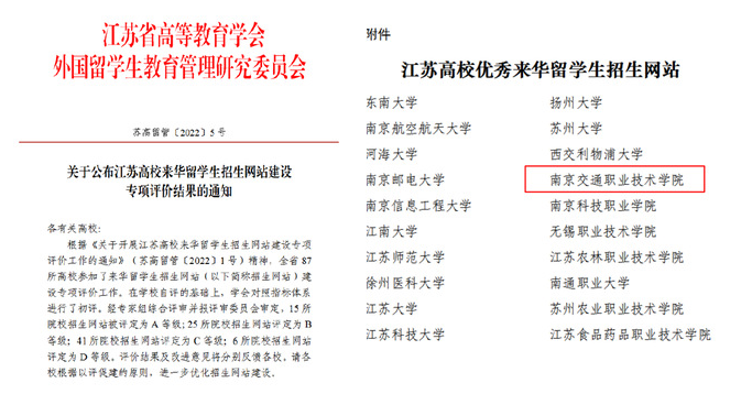 近日,江蘇省高等教育學(xué)會(huì)外國留學(xué)生教育管理研究委員會(huì)公布了江蘇高校來華留學(xué)生招生網(wǎng)站建設(shè)專項(xiàng)評價(jià)結(jié)果,學(xué)院來華留學(xué)生網(wǎng)站被評定為A等級。全省共87所高校參加了本次來華留學(xué)生招生網(wǎng)站建設(shè)專項(xiàng)評價(jià)工作,經(jīng)院校自評、學(xué)會(huì)初評、專家綜合評審并由評審委員會(huì)審議,15所院校招生網(wǎng)站被評定為A等級。