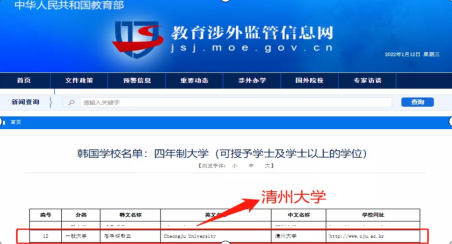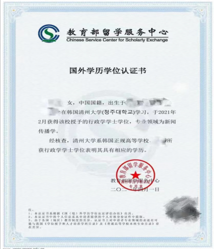 中國(guó)教育部留學(xué)服務(wù)中心不認(rèn)可成人自考、電大、網(wǎng)絡(luò)教育、遠(yuǎn)程教育的本科學(xué)歷。而韓國(guó)清州大學(xué)中文3+1專升本項(xiàng)目發(fā)放的畢業(yè)證書(shū)與清州大學(xué)4年制全日制的本科畢業(yè)證書(shū)無(wú)任何區(qū)別。項(xiàng)目?jī)?nèi)學(xué)生在歸國(guó)后,可獲取教育部留學(xué)服務(wù)中心的海外學(xué)歷學(xué)位認(rèn)證。