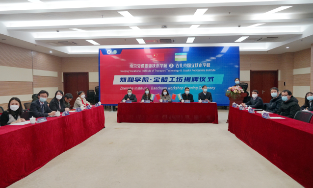 12月16日下午,南京交通職業(yè)技術(shù)學院—吉扎克國立技術(shù)學院鄭和學院·寶船工坊揭牌及開班儀式在圖書館B203隆重舉行。南京交通職業(yè)技術(shù)學院黨委書記賈俐俐、黨委副書記周傳林;吉扎克國立技術(shù)學院校長烏斯曼庫洛夫·阿利舍爾、副校長葉加姆納扎洛夫·蓋拉特、別爾季約羅夫·鐵木爾、阿卜杜納扎羅夫·賈姆希德出席儀式;國際合作與交流辦公室、教務(wù)處、發(fā)展規(guī)劃處、汽車工程學院、路橋與港航工程學院、運輸管理學院等相關(guān)部門;吉扎克國立技術(shù)學院相關(guān)院系分別在南京、烏茲別克斯坦吉扎克以視頻會議的形式參加了云揭幕儀式。