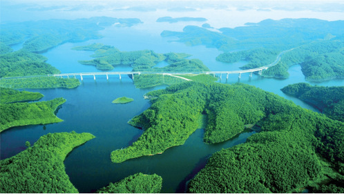 丹江口環(huán)庫公路全長429公里,一邊依臨清澈的丹江口水庫和幽深多姿的島嶼,一邊是國家森林公園。沿途更是風(fēng)光秀美,三季有花、四季見綠,被譽為“一條深呼吸的路”。