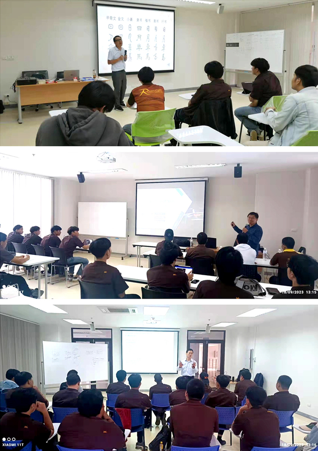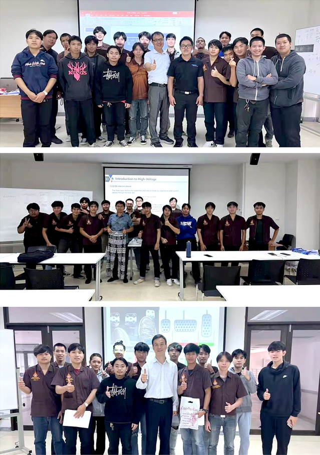 在泰國蘭納皇家理工大學(xué)授課期間,三位老師分別講授了《Construction of new energy vehicles(新能源汽車構(gòu)造)》《Automobile Structure(汽車構(gòu)造)》和《漢語》等課程,并分別為泰國師生開設(shè)了《Development of New Energy Vehicle Industry in China and Exploration of Vocational Education(中國新能源汽車行業(yè)發(fā)展與職教探索)》《Carbon Neutral and New Energy Vehicles(碳中和與新能源汽車)》《Antient Chinese Art(中國古代藝術(shù))》等講座。老師們嚴(yán)謹(jǐn)?shù)墓ぷ鲬B(tài)度、豐厚的專業(yè)學(xué)養(yǎng)、靈活的課堂組織,受到了泰方師生的一致好評。