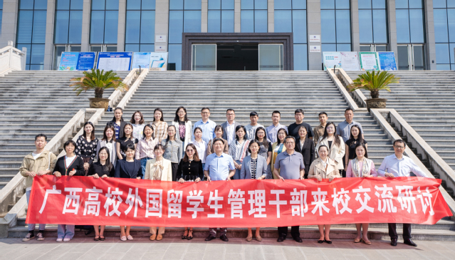 On the morning of April 26th, more than 30 management officials from 24 universities in Guangxi came to China for exchange and visits. Vice Dean Liu Xuefen attended the event, and the International Cooperation and Exchange Office participated in the exchange and discussion. The meeting was chaired by Yuan Qian, Director of the International Cooperation and Exchange Office.