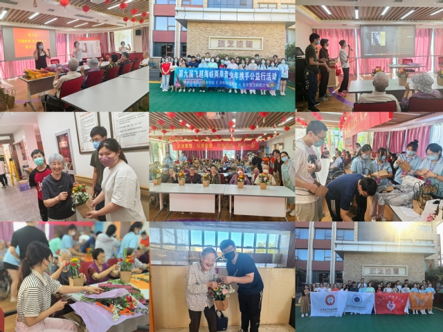 7月29日下午,四所學(xué)校師生代表還一起赴江寧區(qū)瑞芝康老年公寓開展了“第九屆飛越海峽兩岸青少年攜手公益行”志愿敬老服務(wù)活動,了解了公寓老人的日常生活、健康狀況和養(yǎng)老基本情況,通過音樂康養(yǎng)、插花、歌曲等方式與老人們進(jìn)行了親切的交流互動,贏得了老人們的陣陣掌聲。四所院校師生紛紛表示,愿意貢獻(xiàn)出自己微薄的力量,給予老人們關(guān)懷與呵護(hù),在公益實(shí)踐中體現(xiàn)新時代青年擔(dān)當(dāng)。