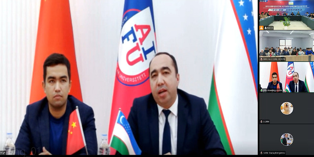 12月25日下午,南京交通職業(yè)技術(shù)學(xué)院-烏茲別克斯坦自然與社會(huì)科學(xué)大學(xué)“中文+技能”培訓(xùn)班線上開(kāi)班儀式在圖書(shū)館B203會(huì)議室隆重舉行。南京交通職業(yè)技術(shù)學(xué)院院長(zhǎng)王道峰、黨委副書(shū)記文愛(ài)民;烏茲別克斯坦職教發(fā)展中心主任扎伊那丁·胡代波帝耶夫、自然與社會(huì)科學(xué)校長(zhǎng)戈立布江·波提若夫、校董事陳文生、副校長(zhǎng)夏克饒德·胡代波帝耶夫出席儀式;江蘇省教育廳對(duì)外與合作交流處三級(jí)調(diào)研員鄭興向開(kāi)班儀式作視頻致辭。中烏相關(guān)學(xué)院師生分別在南京、塔什干參加云開(kāi)班儀式?;顒?dòng)由黨委副書(shū)記文愛(ài)民主持。