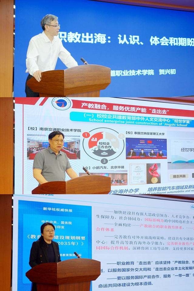 院校實(shí)踐樹標(biāo)桿,職教出海探索“江蘇方案”。在院校經(jīng)驗(yàn)分享環(huán)節(jié),南京鐵道職業(yè)技術(shù)學(xué)院黨委書記賀興初系統(tǒng)闡述了《職教出海:認(rèn)識(shí)、體會(huì)與期盼》,提出構(gòu)建政校企協(xié)同推進(jìn)機(jī)制的發(fā)展建議。南京交通職業(yè)技術(shù)學(xué)院校長王道峰、無錫職業(yè)技術(shù)學(xué)院副校長吳慧媛分別展示了江蘇職業(yè)院校在職教出海、國際化發(fā)展方面做出的創(chuàng)新探索。江蘇職教已形成“標(biāo)準(zhǔn)輸出+本土化改造”“產(chǎn)業(yè)學(xué)院+訂單培養(yǎng)”“技術(shù)培訓(xùn)+文化融通”等特色模式,形成了可復(fù)制的國際職教合作范式,為職業(yè)教育“走出去”提供了江蘇經(jīng)驗(yàn)。