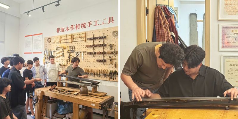活動伊始,孫老師詳細介紹了古琴的制作工藝以及彈奏技巧。從選材、斫制到一步步精妙的構(gòu)造組合,每一個環(huán)節(jié)都蘊含著深厚的文化底蘊與古人的匠心智慧,讓留學生們對古琴這一古老樂器有了全新的認識。在介紹彈奏技巧時,孫老師親自示范,指尖輕撥琴弦,流淌出的悠揚琴音瞬間縈繞在整個活動現(xiàn)場,引得同學們躍躍欲試。大家紛紛圍坐在古琴旁,小心翼翼地撥動琴弦,嘗試著彈奏出屬于自己的旋律。