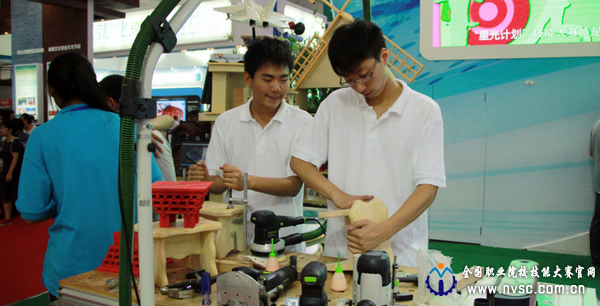6月27日,全國職業(yè)院校技能大賽成果展現(xiàn)場學(xué)生現(xiàn)場制作“中國館”模型