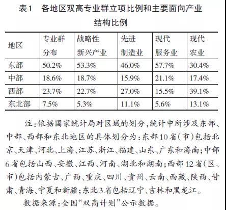 專(zhuān)業(yè)群建設(shè)主要是服務(wù)區(qū)域產(chǎn)業(yè)發(fā)展需求。253個(gè)高水平專(zhuān)業(yè)群1110個(gè)專(zhuān)業(yè)點(diǎn)覆蓋了先進(jìn)制造業(yè)、戰(zhàn)略性新興產(chǎn)業(yè)、大數(shù)據(jù)應(yīng)用等當(dāng)前和未來(lái)經(jīng)濟(jì)發(fā)展的主要領(lǐng)域,197所雙高院校的在校生總數(shù)占全國(guó)高職院校的1/6,無(wú)論從專(zhuān)業(yè)布局還是在校生規(guī)模,均為產(chǎn)業(yè)轉(zhuǎn)型升級(jí)提供了強(qiáng)有力的技術(shù)技能人才支撐。從全國(guó)產(chǎn)業(yè)發(fā)展趨勢(shì)來(lái)看,對(duì)照東部、中部、西部和東北部專(zhuān)業(yè)群分布,東部地區(qū)發(fā)展側(cè)重大數(shù)據(jù)發(fā)展、人工智能等戰(zhàn)略性新興產(chǎn)業(yè)和現(xiàn)代服務(wù)業(yè)的發(fā)展,西部地區(qū)側(cè)重于種植、畜牧養(yǎng)殖等現(xiàn)代農(nóng)業(yè)的發(fā)展,東北三省的制造業(yè)和農(nóng)業(yè)歷來(lái)是區(qū)域經(jīng)濟(jì)發(fā)展的重點(diǎn),各地區(qū)高水平專(zhuān)業(yè)群主要面向產(chǎn)業(yè)與區(qū)域產(chǎn)業(yè)發(fā)展,基礎(chǔ)較為契合。