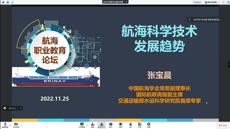 中國(guó)航海學(xué)會(huì)常務(wù)副理事長(zhǎng)張寶晨教授作了題為“航??萍及l(fā)展趨勢(shì)”的主旨報(bào)告。院所代表、國(guó)外代表和學(xué)校代表分別以不同的視角,先后圍繞當(dāng)前疫情常態(tài)化形勢(shì)下,航海職業(yè)教育人才培養(yǎng)過(guò)程中存在的前沿?zé)狳c(diǎn)問(wèn)題和實(shí)踐中亟需解決的關(guān)鍵問(wèn)題進(jìn)行交流探討。