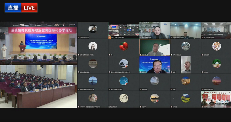 11月25日下午,由中國(guó)交通教育研究會(huì)職業(yè)教育分會(huì)航海專委會(huì)、江蘇省交通運(yùn)輸行指委航海類專委會(huì)、全國(guó)航海職教集團(tuán)(簡(jiǎn)稱“兩委一集團(tuán)”)主辦,江蘇航運(yùn)職業(yè)技術(shù)學(xué)院承辦的后疫情時(shí)代航海職業(yè)教育國(guó)際化辦學(xué)論壇采用線上線下相結(jié)合的方式舉行。江蘇省交通運(yùn)輸廳副廳長(zhǎng)、江蘇省交通運(yùn)輸行指委主任委員金凌,江蘇海事局副局長(zhǎng)王秀峰,南通海事局副局長(zhǎng)薛建軍,南通海事局船員管理處處長(zhǎng)黃桂兵,南通通洋船舶管理有限公司副總經(jīng)理王保成,交通行指委航海類專委會(huì)主任委員、全國(guó)航海職教集團(tuán)理事長(zhǎng)、江蘇航運(yùn)職業(yè)技術(shù)學(xué)院院長(zhǎng)施祝斌在主會(huì)場(chǎng)出席,來(lái)自全國(guó)各地航海職業(yè)院校、相關(guān)企事業(yè)單位及部分國(guó)外航運(yùn)企業(yè)的領(lǐng)導(dǎo)、專家和代表等200余人齊聚“云端”,相關(guān)師生代表出席線下主會(huì)場(chǎng)的開(kāi)幕式和論壇。活動(dòng)由全國(guó)航海職教集團(tuán)副理事長(zhǎng)兼秘書長(zhǎng)、江蘇航運(yùn)職業(yè)技術(shù)學(xué)院副校長(zhǎng)吳麗華主持。