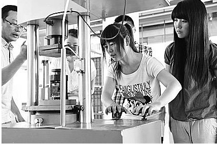學(xué)生在做建筑材料性能測(cè)試