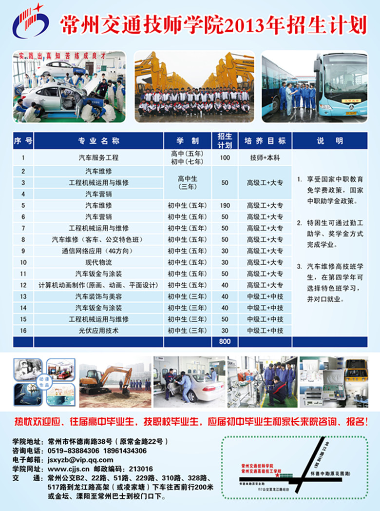 常州交通技師學(xué)院2013年招生計(jì)劃