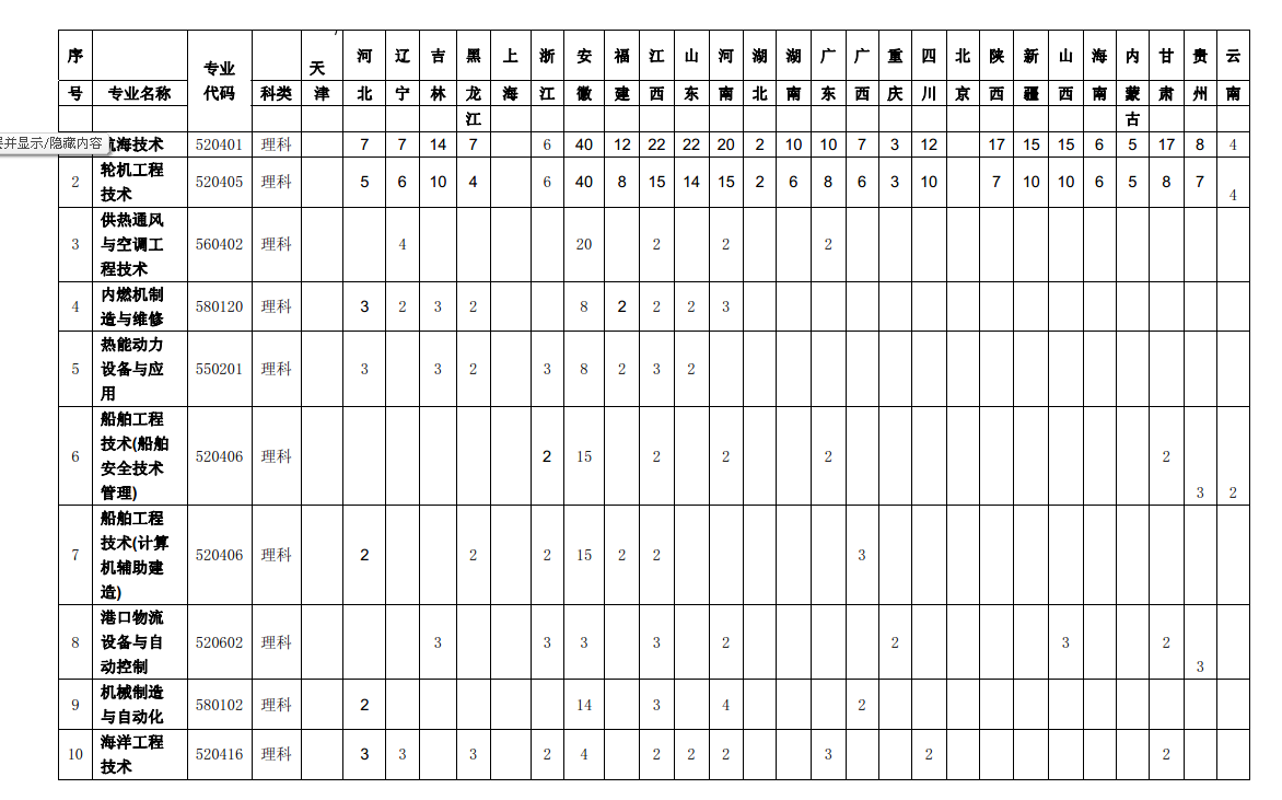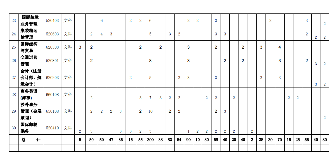 | 1 | 普通文理科 | 航海技術(shù) | 520401 | 170 | 60 | 110 |