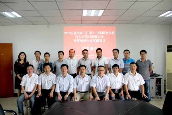 9月13日上午, 2012年度國家(江蘇省)中等職業(yè)學(xué)校汽車運用與維修專業(yè)青年教師企業(yè)實踐項目結(jié)業(yè)典禮在我校舉行。江蘇省中等職業(yè)教育師資培訓(xùn)中心方健華科長、曹鴻驊老師,副校長楊益明,江蘇外汽汽車維修服務(wù)有限公司副總經(jīng)理魏世康,汽車工程學(xué)院負(fù)責(zé)人等出席了結(jié)業(yè)典禮。來自全省中等職業(yè)學(xué)校10名青年教師骨干參加了典禮。典禮由汽車工程學(xué)院院長文愛民主持。