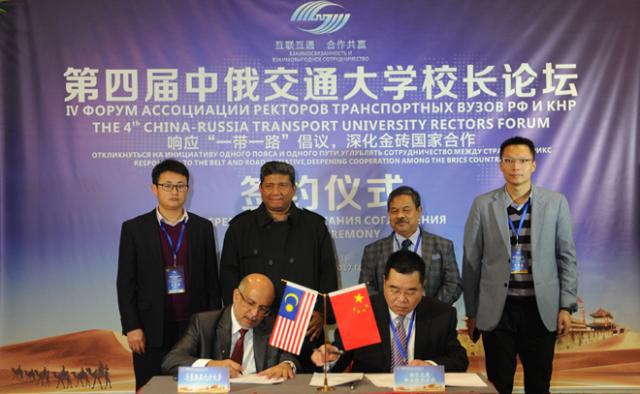 在本屆論壇上,包括南京交院在內(nèi)的中外27家交通類高校成為“中俄交通大學(xué)校長聯(lián)盟”暨“一帶一路”沿線國家及金磚國家交通類高校聯(lián)盟新成員。本屆論壇簽署了8項(xiàng)雙邊校際合作協(xié)議,張毅院長代表學(xué)院與“一帶一路”沿線國家馬來西亞北方大學(xué)簽署一項(xiàng)校際交流合作協(xié)議。
