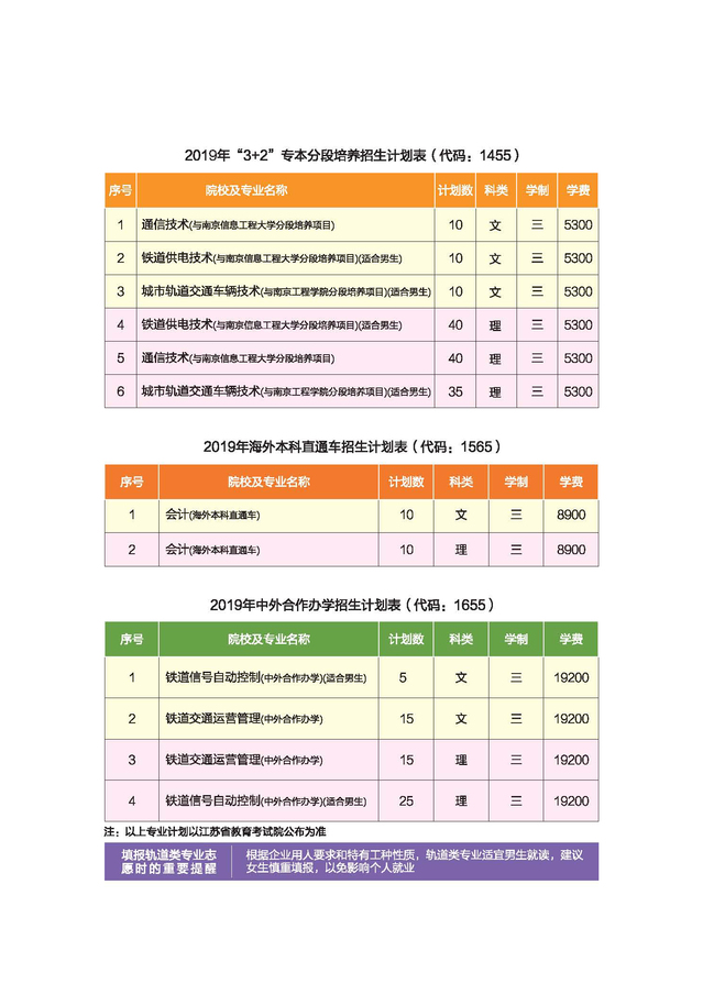 2019年江蘇招生計劃1455、1565、1655代碼