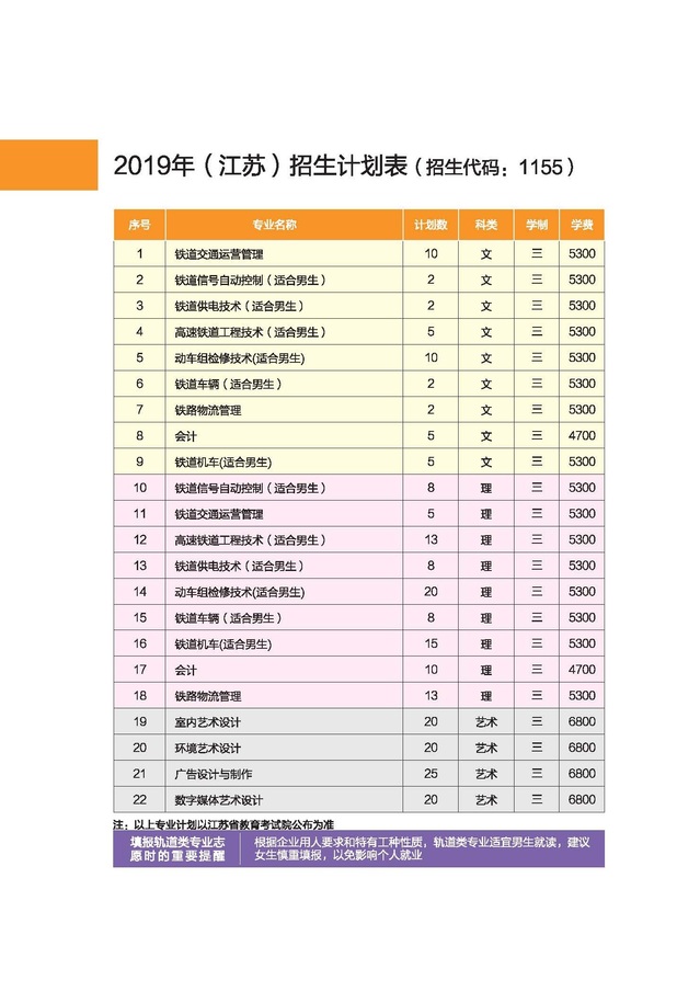 南京鐵道職業(yè)技術(shù)學院2019年江蘇招生計劃