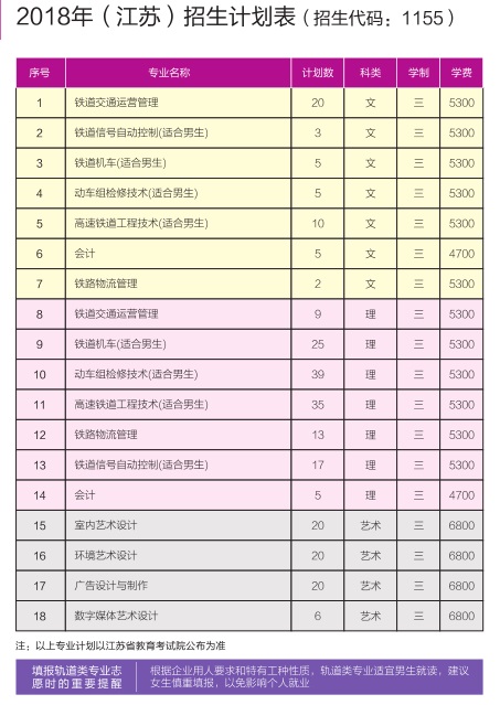 南京鐵道職業(yè)技術學院2018年江蘇省招生專業(yè)計劃