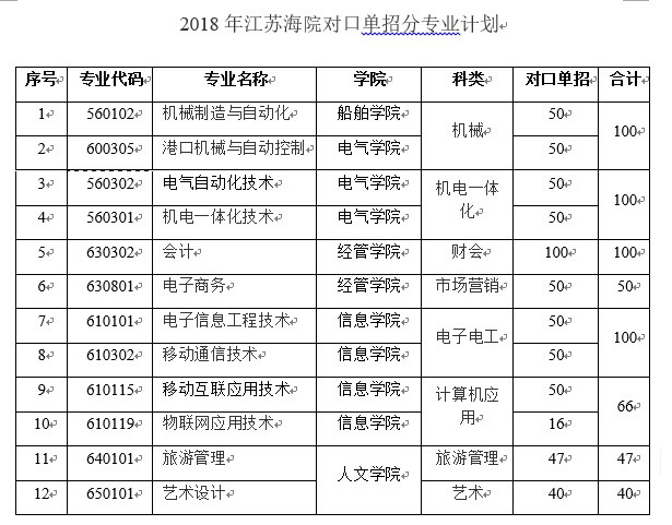 江蘇海事職業(yè)技術(shù)學(xué)院2018年對(duì)口單招分專業(yè)計(jì)劃