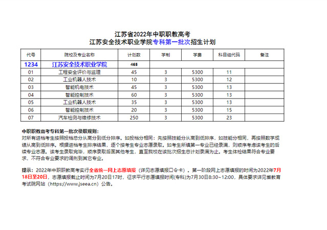 江蘇安全技術職業(yè)學院2022年中職職教高考??频谝慌螌I(yè)招生計劃