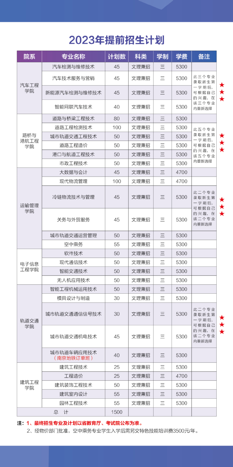 南京交通職業(yè)技術(shù)學(xué)院2023年高職提前招生專業(yè)及計劃