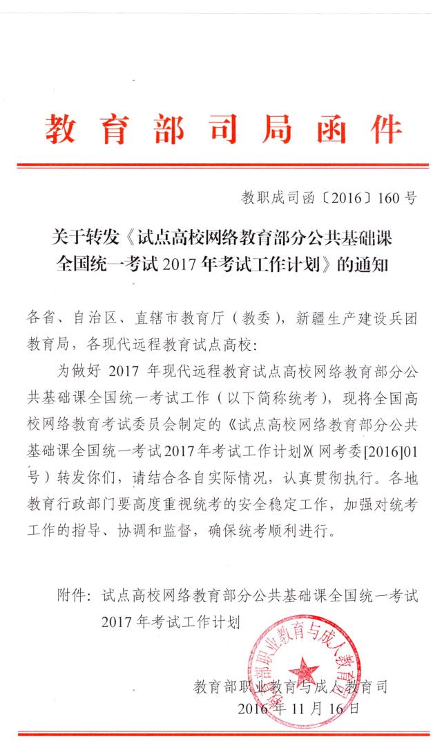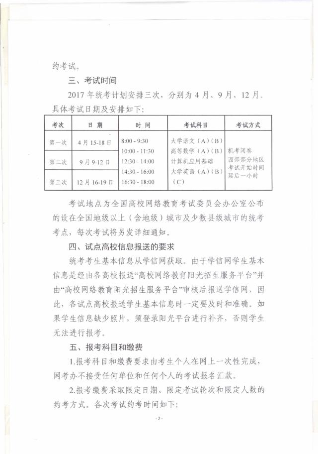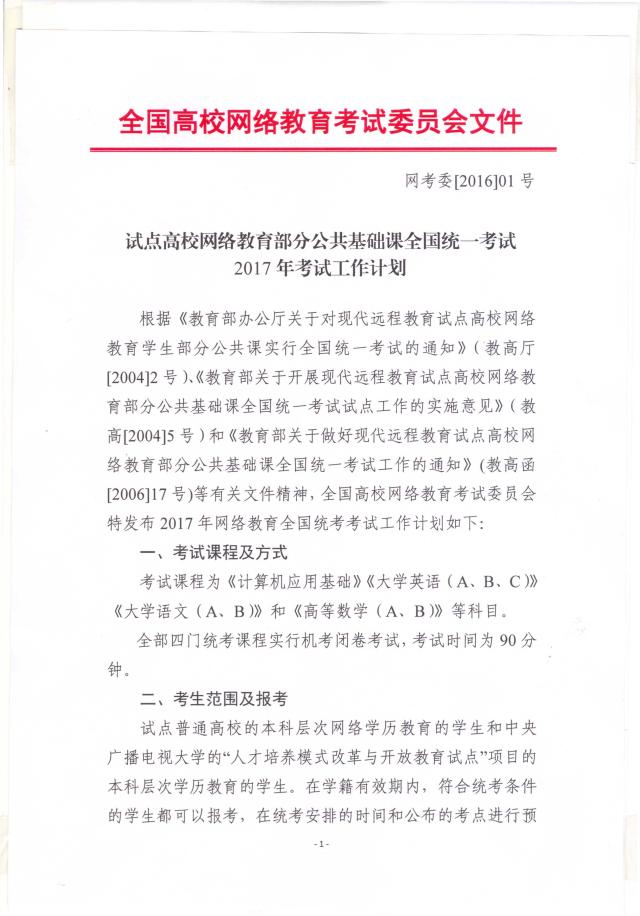 全國(guó)統(tǒng)一網(wǎng)絡(luò)統(tǒng)考2017年考試工作計(jì)劃
