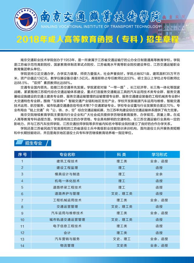 南京交通職業(yè)技術(shù)學(xué)院2018年專(zhuān)科函授招生簡(jiǎn)章