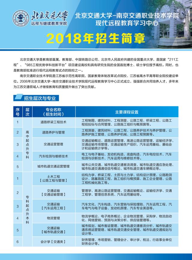 2018年北京交通大學(xué)網(wǎng)絡(luò)教育招生簡章