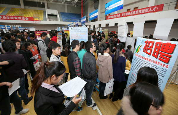 此次招聘會是學(xué)院今年繼舉辦路橋建工類大型雙選會和多場中小型專場雙選會之后,舉辦的又一次大型綜合招聘會。參會企業(yè)涉及行業(yè)廣泛,職位需求更趨多樣化,包括汽車、運(yùn)輸管理、電子、機(jī)械、電氣、通信、物流、計算機(jī)、藝術(shù)等多個領(lǐng)域。招聘會共吸引了省蘇舜集團(tuán)、南京朗馳集團(tuán)、蘇州汽車客運(yùn)集團(tuán)、中國人民財產(chǎn)保險股份有限公司、蘇寧電器、徐工集團(tuán)等省內(nèi)外228家知名企業(yè)進(jìn)場招聘,提供崗位近6000個。而學(xué)院2013屆在校畢業(yè)生僅1893名,供需比達(dá)1:3。