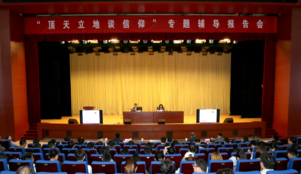 為了進(jìn)一步貫徹全國(guó)和全省高校思想政治工作會(huì)議精神,把中央和省有關(guān)加強(qiáng)和改進(jìn)高校思想政治工作的意見(jiàn)落細(xì)落實(shí),學(xué)院邀請(qǐng)了徐川老師來(lái)院做“頂天立地談信仰”專(zhuān)題報(bào)告。報(bào)告會(huì)由黨委書(shū)記賈俐俐主持,全體院領(lǐng)導(dǎo),全體黨員、中層干部,思政課教師、輔導(dǎo)員,團(tuán)學(xué)部門(mén)工作人員以及部分學(xué)生入黨積極分子參加了會(huì)議。
