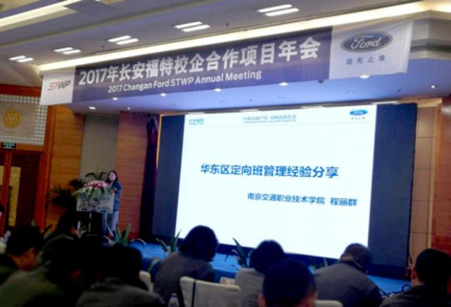 學(xué)院榮獲2017長(zhǎng)安福特校企合作全國(guó)評(píng)比一等獎(jiǎng),文愛(ài)民老師榮獲“模范項(xiàng)目負(fù)責(zé)人”稱號(hào),程麗群老師被評(píng)為“模范定向班講師”,燕寒、劉奕貫兩位老師被評(píng)為“優(yōu)秀定向班講師”。程麗群老師作為華東區(qū)域校企合作項(xiàng)目代表與其他合作院校交流、分享了學(xué)院的項(xiàng)目管理經(jīng)驗(yàn)。