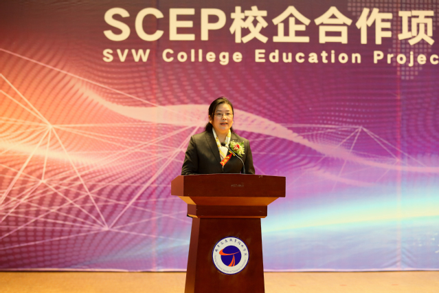 學(xué)院黨委書記賈俐俐代表學(xué)院致答謝辭。她向蒞臨本次簽約暨開業(yè)儀式的領(lǐng)導(dǎo)和嘉賓表示熱烈歡迎,向長(zhǎng)期以來(lái)關(guān)心支持學(xué)院發(fā)展的社會(huì)各界表示衷心感謝。賈書記指出,校企合作是高質(zhì)量發(fā)展的必由路徑,也是學(xué)院長(zhǎng)期以來(lái)堅(jiān)持的發(fā)展道路和積累的辦學(xué)經(jīng)驗(yàn)。她表示,此次與上汽大眾汽車有限公司正式簽署合作協(xié)議,是學(xué)院向校企深度合作邁出的堅(jiān)實(shí)一步,學(xué)院將以此次合作為契機(jī),著力開拓校企深度合作新領(lǐng)域、新途徑,在人才培養(yǎng)、教學(xué)實(shí)踐、資源共享、技術(shù)服務(wù)等方面加強(qiáng)合作與交流,取得碩果,實(shí)現(xiàn)學(xué)校、企業(yè)、學(xué)生多方共贏。