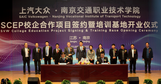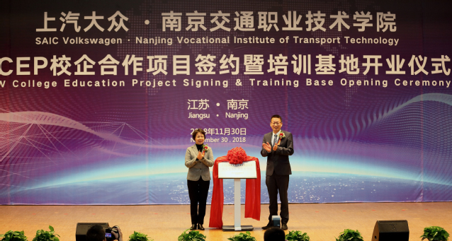 11月30日上午,上汽大眾-南京交通職業(yè)技術(shù)學(xué)院SCEP項(xiàng)目簽約暨培訓(xùn)基地開業(yè)儀式隆重舉行。省交通運(yùn)輸廳副巡視員、機(jī)關(guān)黨委書記陳萍;上汽大眾SKODA售后服務(wù)高級(jí)總監(jiān)鐘仲秋,上汽大眾VW品牌技術(shù)高級(jí)總監(jiān)MR.Patrick Okeeffe等上汽大眾代表;全國(guó)上汽大眾合作兄弟院校代表;上汽大眾汽車VW品牌和SKODA品牌經(jīng)銷商領(lǐng)導(dǎo)以及經(jīng)銷商代表;江寧高新區(qū)管委會(huì)副主任王寧邦;學(xué)院黨委書記賈俐俐,院長(zhǎng)張毅,副院長(zhǎng)楊益明等出席活動(dòng)。