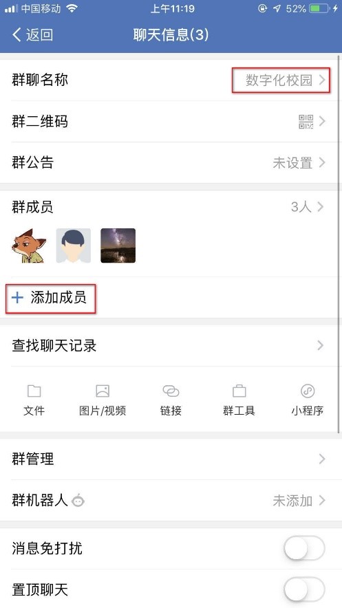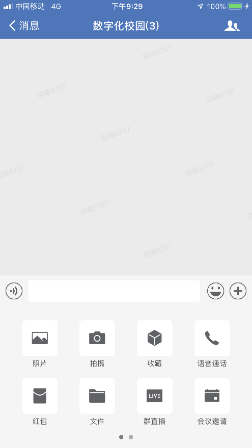 2、進(jìn)入群聊,點(diǎn)擊右下角“+”,可以看到,如下功能菜單: