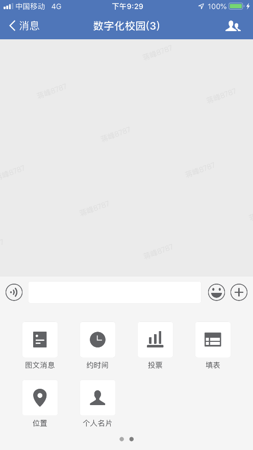 功能包含:“照片”、“拍攝”、“收藏”、“語音通話”、“紅包”、“文件”、“群直播”、“會(huì)議邀請”、“圖文信息”、“約時(shí)間”、“投票”、“填表”、“位置”、“個(gè)人名片”。下面介紹下主要功能: