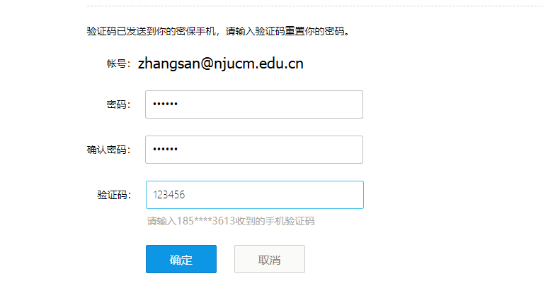 根據(jù)提示設(shè)置新密碼,填寫密保郵箱郵件中的驗(yàn)證碼,點(diǎn)擊“確定”,系統(tǒng)提示“重置密碼成功”信息。