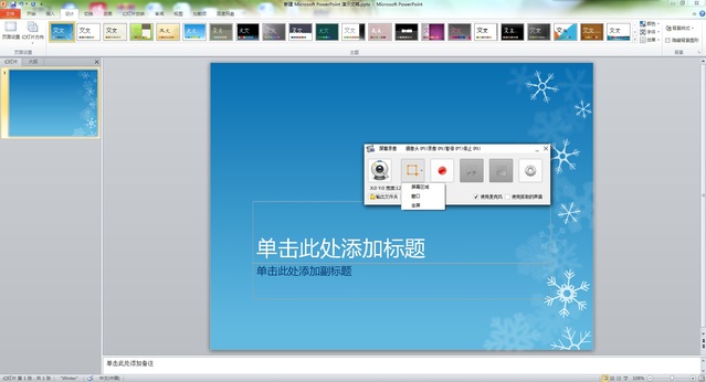 打開PPT,點(diǎn)第二個(gè)鍵,彈出三個(gè)選項(xiàng),如果是錄制全屏則選“全屏”,如果只錄某一個(gè)窗口,則選“窗口”,然后單擊那個(gè)窗口,會(huì)有一個(gè)紅色方框出現(xiàn)一下就選擇成功了。