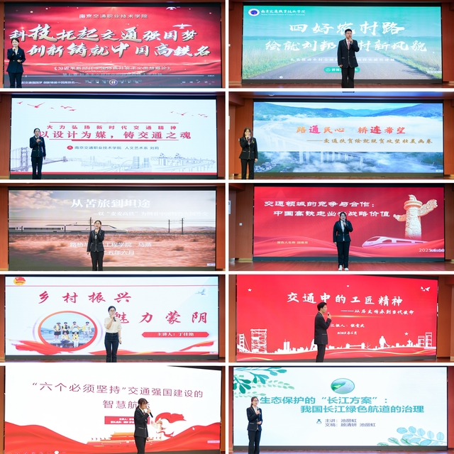 本次“大學生講思政課”有39組學生報名,經(jīng)過初賽、復賽,有10組選手進入決賽。決賽現(xiàn)場,選手們生動講述了一堂堂生動的思政課。同學們或講述黨旗引領,交通扶貧讓天塹變通途;或聚焦“四好農(nóng)村路”,繪就鄉(xiāng)村振興新風貌;或帶我們見證中國高鐵如何以自主創(chuàng)新突破“卡脖子”的歷程等等,充分展現(xiàn)了新時代交通運輸事業(yè)取得的歷史性成就,深刻闡明了新時代交通青年的責任與使命。
