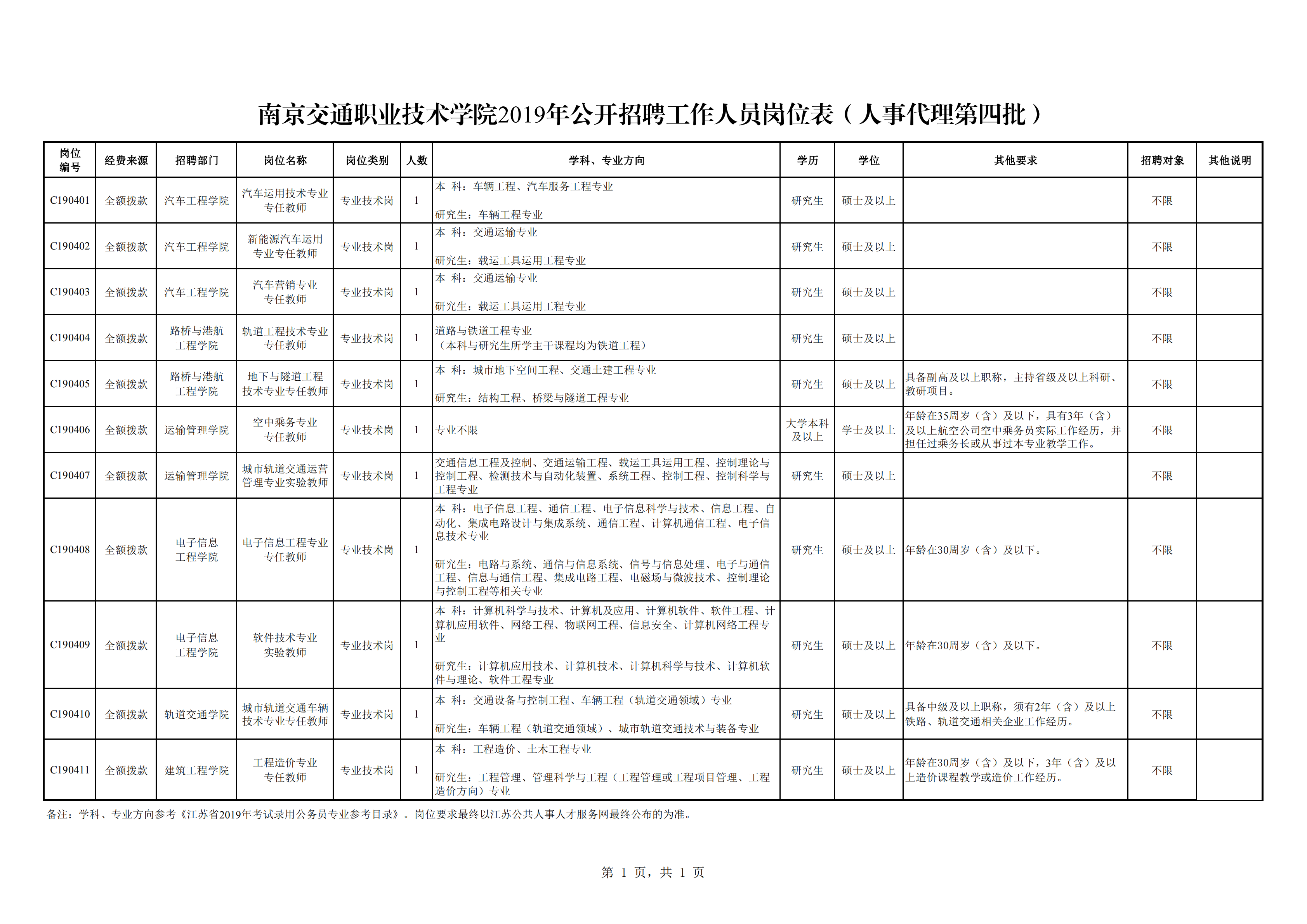 附件1:南京交通職業(yè)技術(shù)學(xué)院2019年公開招聘工作人員崗位表(人事代理第四批).pdf
