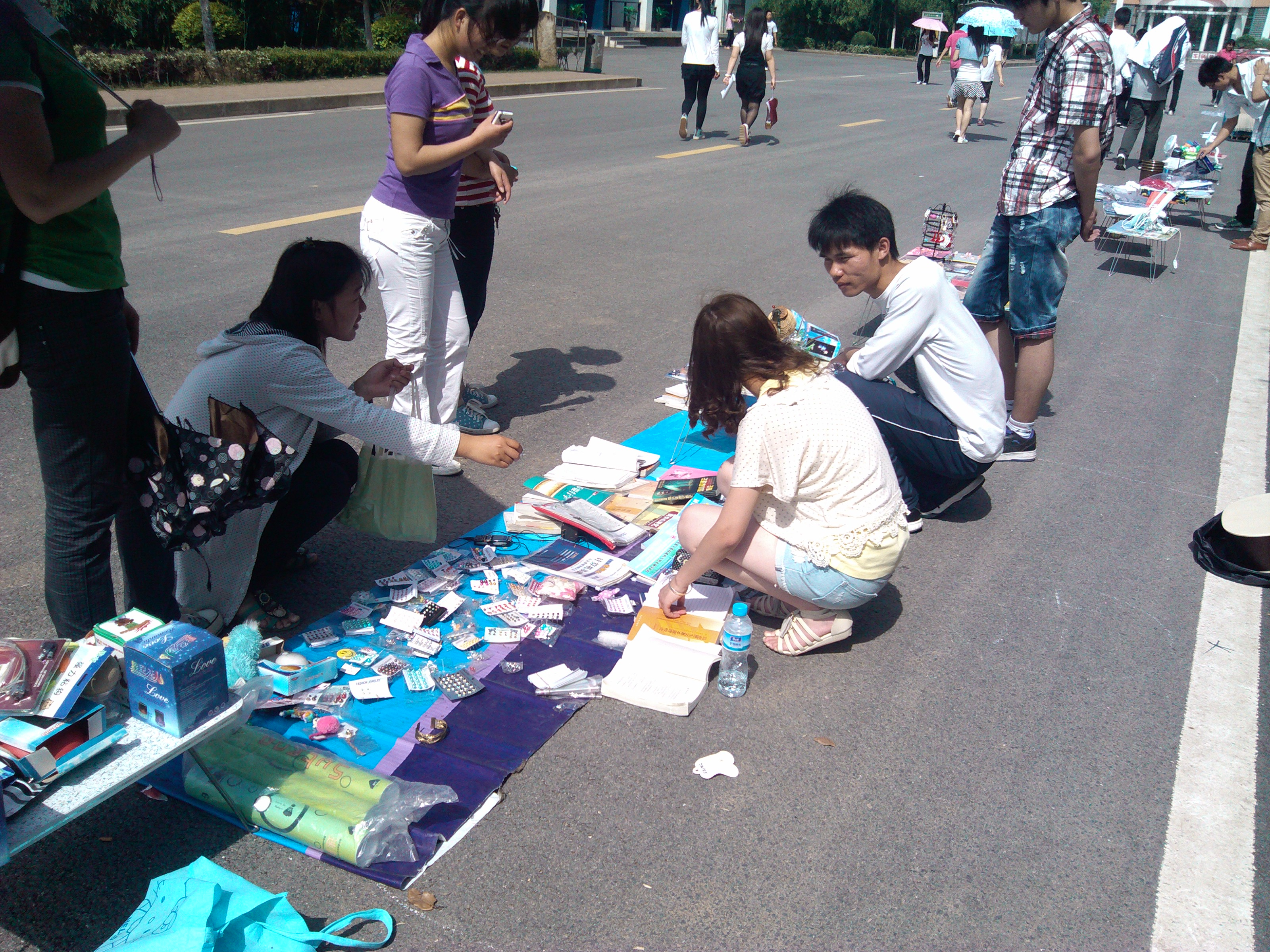 雖然烈日炎炎,但社團(tuán)里仍有許多同學(xué)熱情地參與。所售物品也琳瑯滿目,從書籍、雜志、到衣物、玩偶、球拍到小飾品等等,前來選購的同學(xué)也滿載而歸?;顒?dòng)中,同學(xué)們的全身投入,讓“跳蚤市場(chǎng)”的氣氛更活躍,成為一道亮麗的風(fēng)景。