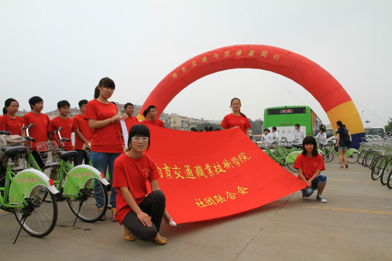 2012年9月22日世界無車日,南京交通職業(yè)技術(shù)學(xué)院社團(tuán)聯(lián)合會帶領(lǐng)環(huán)保協(xié)會積極響應(yīng)通盛客運(yùn)公司“綠色交通與您健康同行活動”,進(jìn)行了環(huán)城騎車活動.