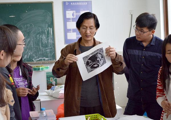 4月23日下午,江蘇省美術(shù)館國(guó)家一級(jí)美術(shù)師陳超先生做客我校,在明德樓報(bào)告廳為作了題為“與時(shí)俱進(jìn)的中國(guó)版畫”的專題藝術(shù)講座。講座以版畫家自身的創(chuàng)作感悟?yàn)榍腥朦c(diǎn),介紹中國(guó)現(xiàn)代版畫的發(fā)展軌跡,在歷史與現(xiàn)代的交融中,傳遞出當(dāng)代版畫家對(duì)原創(chuàng)版畫的價(jià)值堅(jiān)持與繼承創(chuàng)新。講座結(jié)束后,陳老師親自指導(dǎo)學(xué)生體驗(yàn)版畫制作。在陳老師的示范下,體驗(yàn)者們初步掌握了版畫制作的技巧,并且展示自己的創(chuàng)作作品。