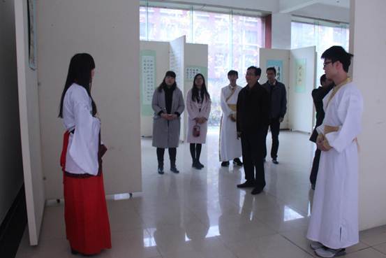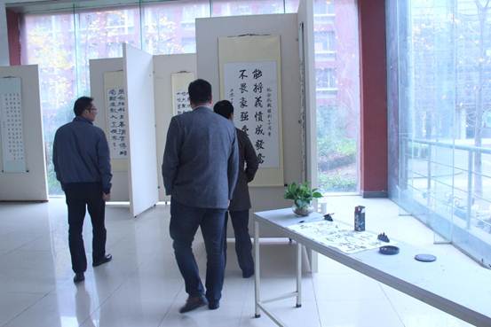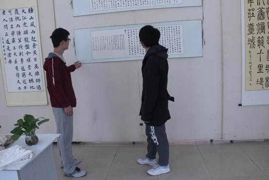 2015年11月20日,由我校團委、人文藝術(shù)系、校社團聯(lián)合會和國學社聯(lián)合組織的“翰墨抒青春,丹青繪夢想”為主題的紀念抗戰(zhàn)勝利七十周年校園書畫展在明德樓展覽大廳圓滿結(jié)束。社聯(lián)指導老師崔老師邀請黨委許書記,團委書記,學工處長出席參觀。