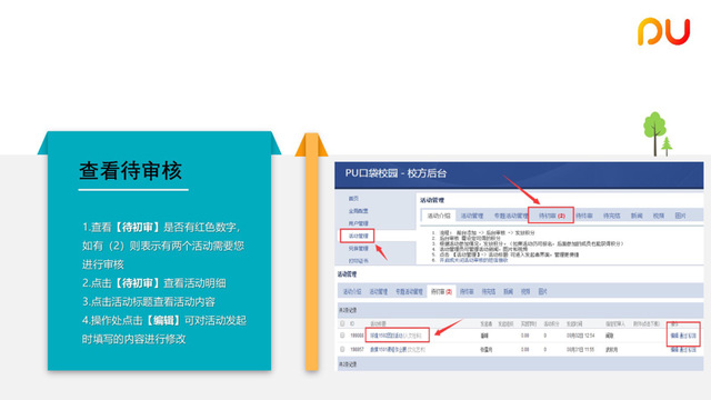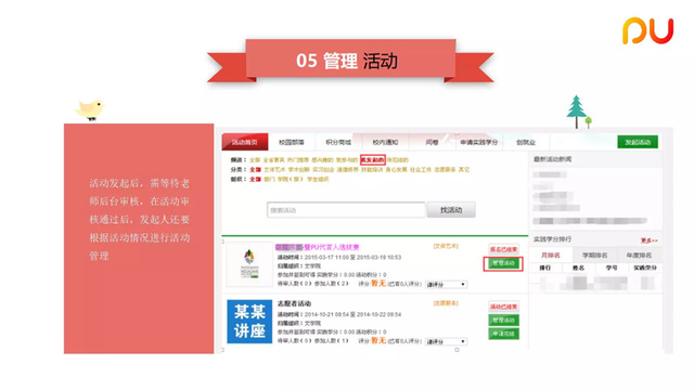 從普通學生、活動發(fā)起及活動審核等幾個方面為大家送上PU使用教程,請大家認真學習