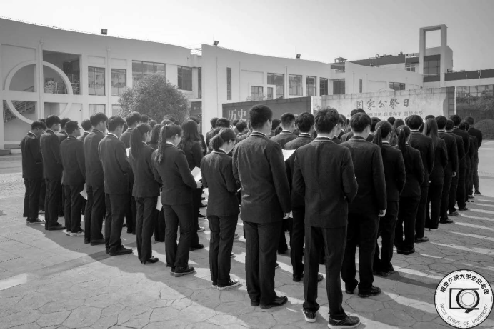 2018年12月13日中午12點(diǎn)整,參與悼念活動(dòng)的同學(xué)們?cè)谒荚刺脧V場(chǎng)集合。12點(diǎn)30分,悼念活動(dòng)正式開(kāi)始。
