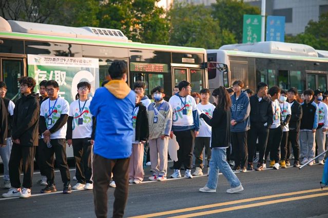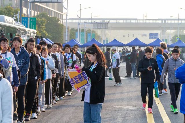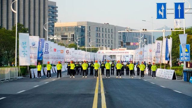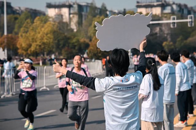 南京江寧大學(xué)城半程馬拉松在體育中心南門鳴槍起跑,我院志愿者助力此次馬拉松比賽