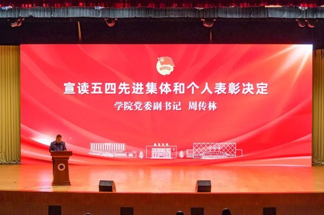 ▲學(xué)院黨委副書記周傳林宣讀五四先進(jìn)集體和個(gè)人表彰決定