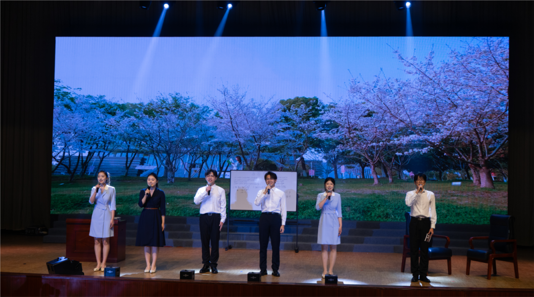 隨后,校青年之聲廣播臺(tái)獻(xiàn)上配樂(lè)朗誦《歲月的回響》。同學(xué)們用深情的聲音,將圖書館的靜謐、運(yùn)動(dòng)場(chǎng)的激情、考前的奮戰(zhàn)、宿舍的夜話等校園生活片段娓娓道來(lái),喚起了校友們對(duì)青春歲月的集體記憶。