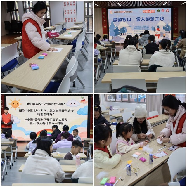 手工制作環(huán)節(jié)中,志愿者與孩子們攜手合作,利用洗臉巾、棉花、橡皮泥等材料,一步步制作出各具特色的小雪人。過(guò)程中,志愿者們耐心指導(dǎo)、細(xì)致協(xié)助,不僅鍛煉了溝通與實(shí)操能力,更在親切互動(dòng)中傳遞了關(guān)懷與鼓勵(lì)?;顒?dòng)不僅提升了孩子們的創(chuàng)造力和動(dòng)手能力,也為志愿者提供了踐行公益、服務(wù)社會(huì)的實(shí)踐平臺(tái),體現(xiàn)出資助育人工作室“受助-自助-助人”的良性循環(huán)理念。