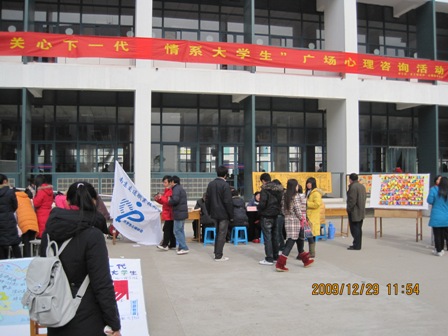 為幫助學(xué)生解決在生活、學(xué)習(xí)、就業(yè)、心理等方面遇到的問題,促進(jìn)下一代健康成長(zhǎng),12月29日中午,由學(xué)生工作處和關(guān)心下一代工作委員會(huì)聯(lián)合舉辦的“關(guān)心下一代,情系大學(xué)生”廣場(chǎng)心理咨詢活動(dòng)在思源堂前舉行。